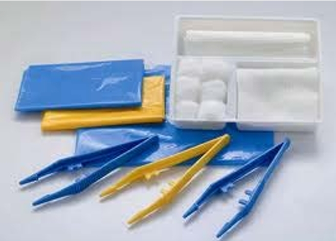 All necessary components for routine dressing procedures grouped and placed in order of use. Wrapped in large field that creates immediate sterile field. Exclusively made by single use components. Customization available.